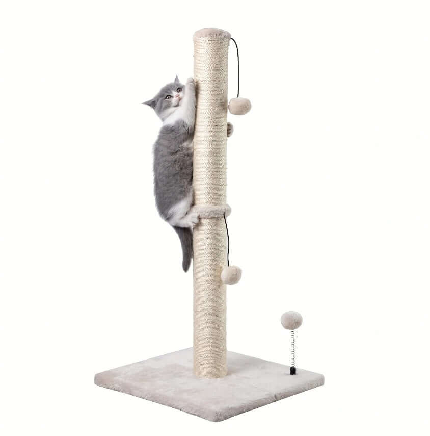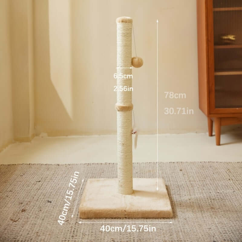 Extra Thick Indoor Cat Scratching Post With Hanging Ball Toy - Durable Fiberboard Claw-Friendly Surface For Cats, Sturdy & Safe Design For Play And Relaxation, Cat Scratcher
